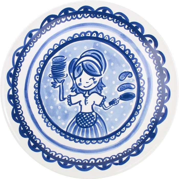 Dit pannenkoekenbord is gemaakt met een knipoog naar het oud-hollandse Delfts blauw servies. Natuurlijk ook geschikt om je pizza van te eten of om toastjes op te serveren.
