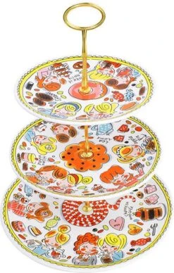 Deze etagère is voorzien van 3 lagen met 3 vrolijke borden in de stijl van Even Bijkletsen. De etagère is ideaal geschikt voor het serveren van de lekkerste hapjes en staat ook nog eens erg leuk op tafel.