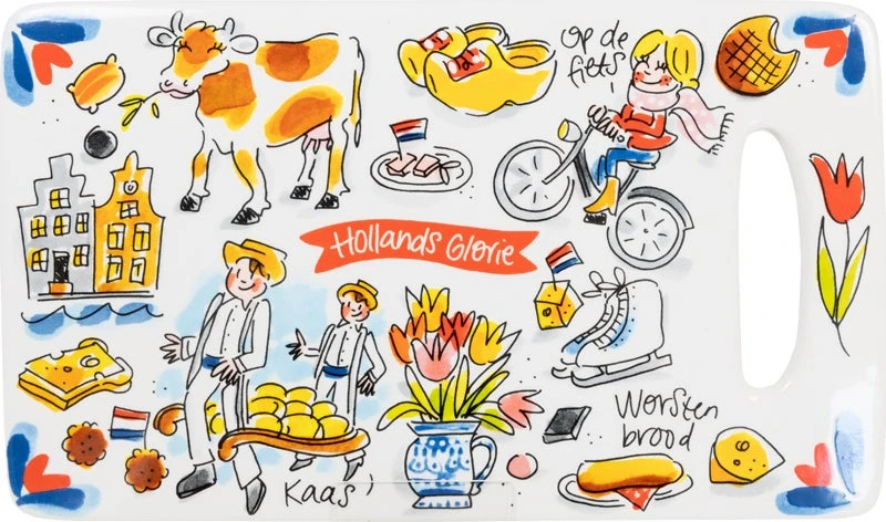 We love Holland! De nieuwe Hollands Glorie lijn van Blond Amsterdam is vormgegeven in frisse rood/wit/blauwe tinten en voorzien van typisch Hollandse illustraties. Een echt Hollands kaasplankje met typische Hollandse tafereeltjes en hapjes.