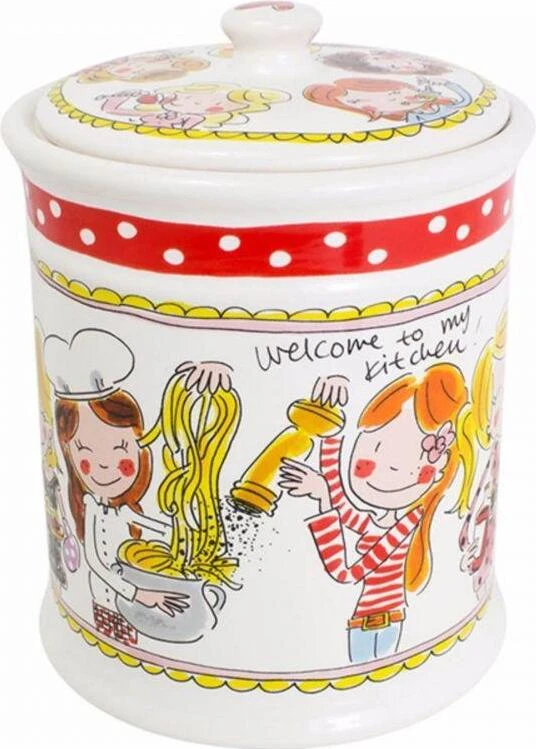 Deze voorraadpot is onderdeel van het nieuwe Even Bijkletsen. Perfect om jouw keuken nog gezelliger te maken. De opvallende en kleurrijke illustraties kenmerken de Even bijkletsen lijn van de twee vriendinnen uit Amsterdam: een servieslijn met een knipoog.