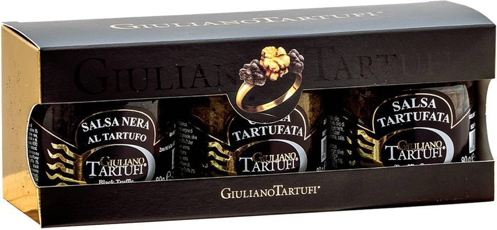 Perfect om cadeau te geven of zelf van te smullen! De cadeauset van Giuliano Trartufi bestaat uit 2 verschillende truffeltapenades en een truffelcreme. Giuliano Tartufi is de perfecte gids om je mee te nemen in de wereld van heerlijke truffels. Truffels zijn de waardevolle vruchten van de aarde die we volgens de Italiaanse cultuur moeten respecteren. Ze worden daarom seizoensgebonden geoogst en verwerkt volgens de traditie van de Umbrische en Italiaanse keuken. Zo ook dit heerlijke cadeaupakket.