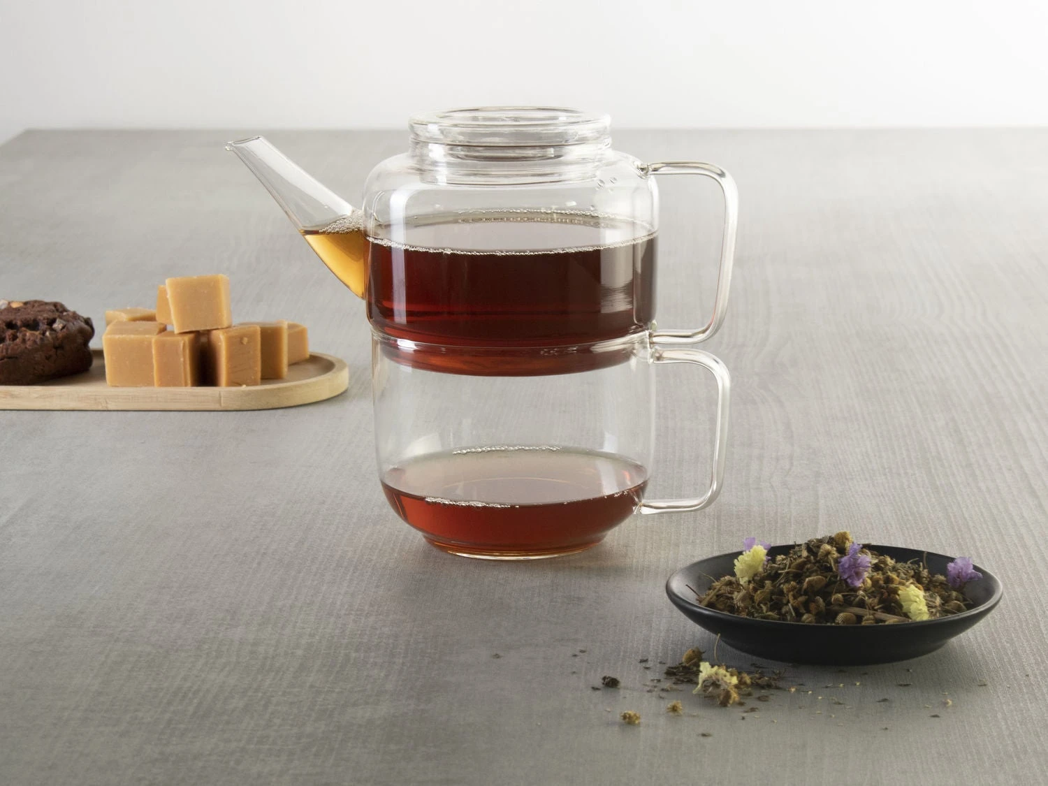 Thee voor 1? Gebruik deze thee pot met bijpassend theeglas waardoor je nooit teveel thee maakt. De pot is gemaakt van glas en vaatwassermachinebestendig.