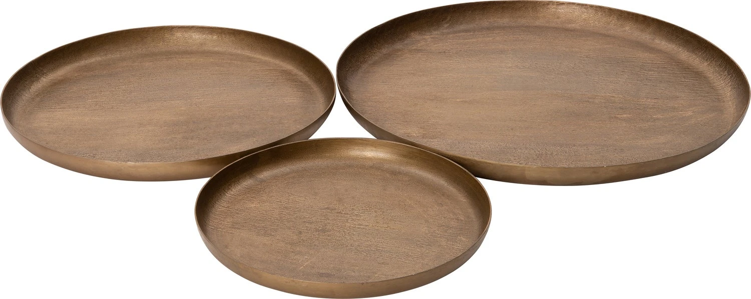 Het Kano dienblad uit de collectie van Intratuin fleurt jouw interieur helemaal op! Ideaal als je houdt van een sfeervolle uitstraling! Het blad is gemaakt van aluminium en heeft door de antieke afwerking een mooie gouden kleur. Gebruik het om drankjes op te serveren of als onderzetter voor wat losse decoraties. Door de omhoogstaande rand is alles goed beschermd. De diameter is 50 cm en de hoogte is 3 cm.