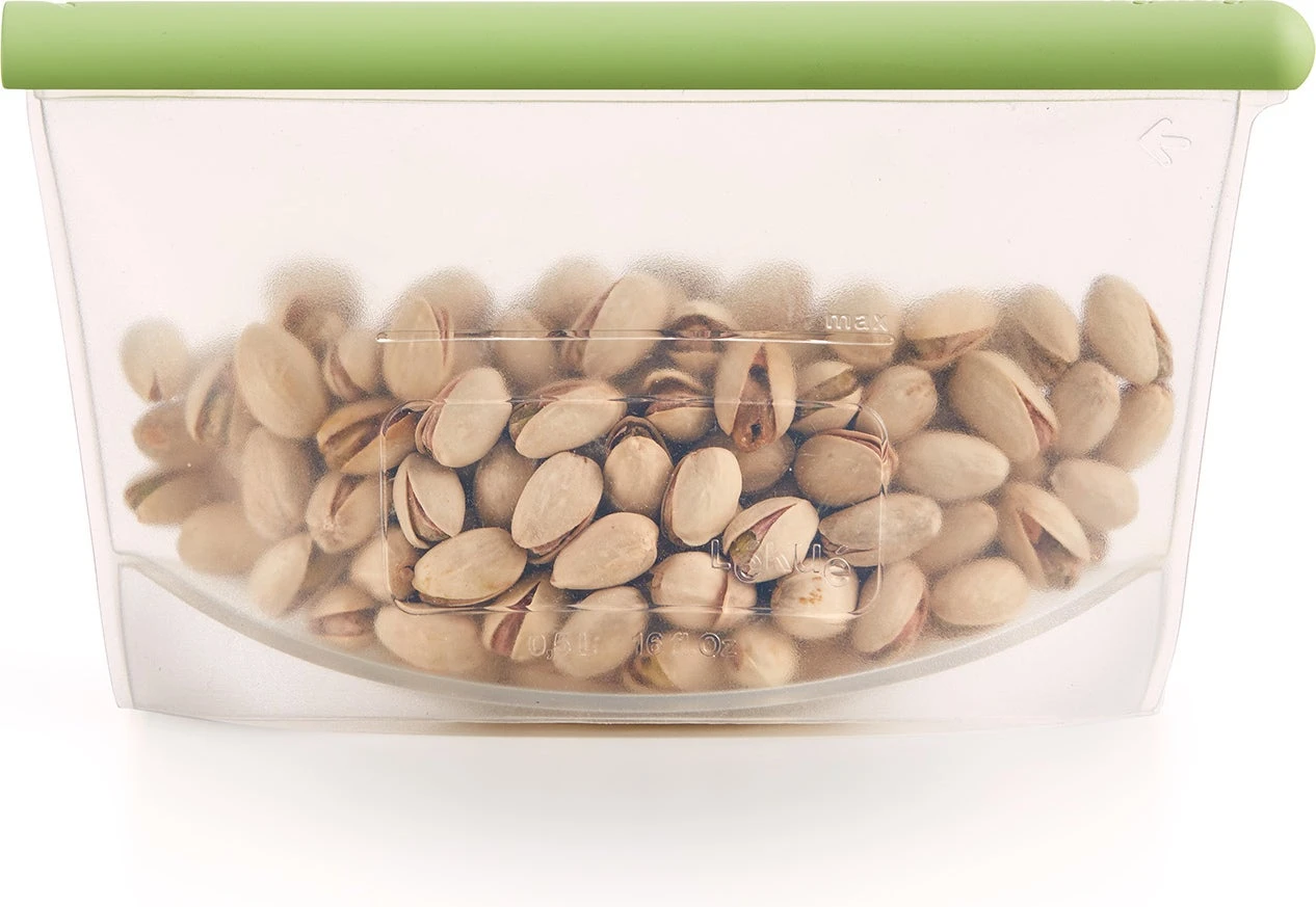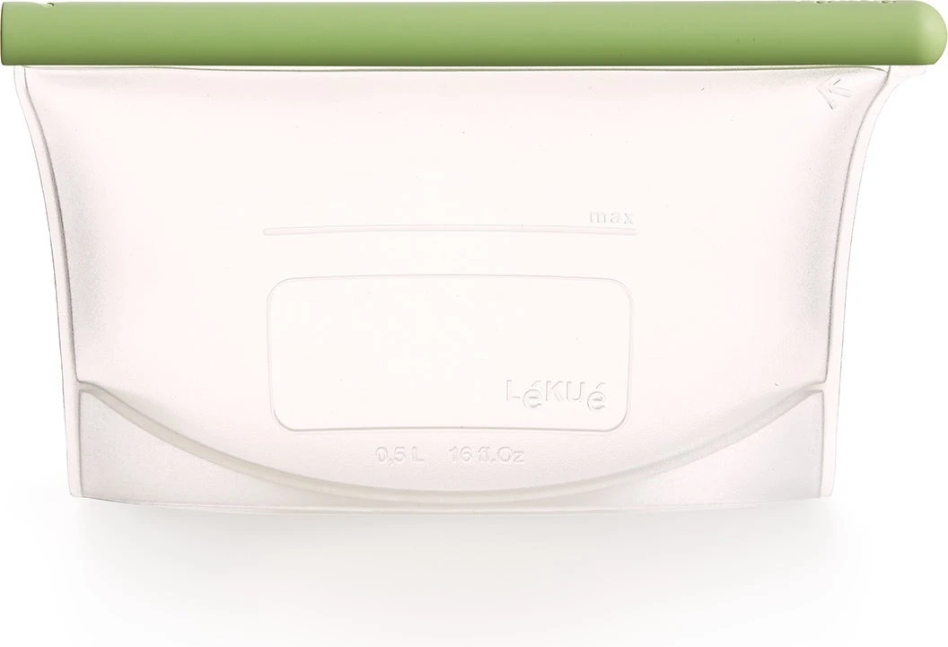 Lékué heeft handige herbruikbare vershoudzakken. Deze zakken zijn gemaakt van silicone, waardoor ze gemakkelijk schoon te maken zijn. In een handomdraai weer herbruikbaar voor de volgende ronde. Aan het zakje vind je een zipper, hierdoor blijft het zakje goed gesloten. Je zou nog wat op de verhoudzak kunnen schrijven en klaar voor gebruik. De zakken zijn geschikt voor de koelkast en de vriezer. Je kunt er 0,5 L aan etenswaar in bewaren.
