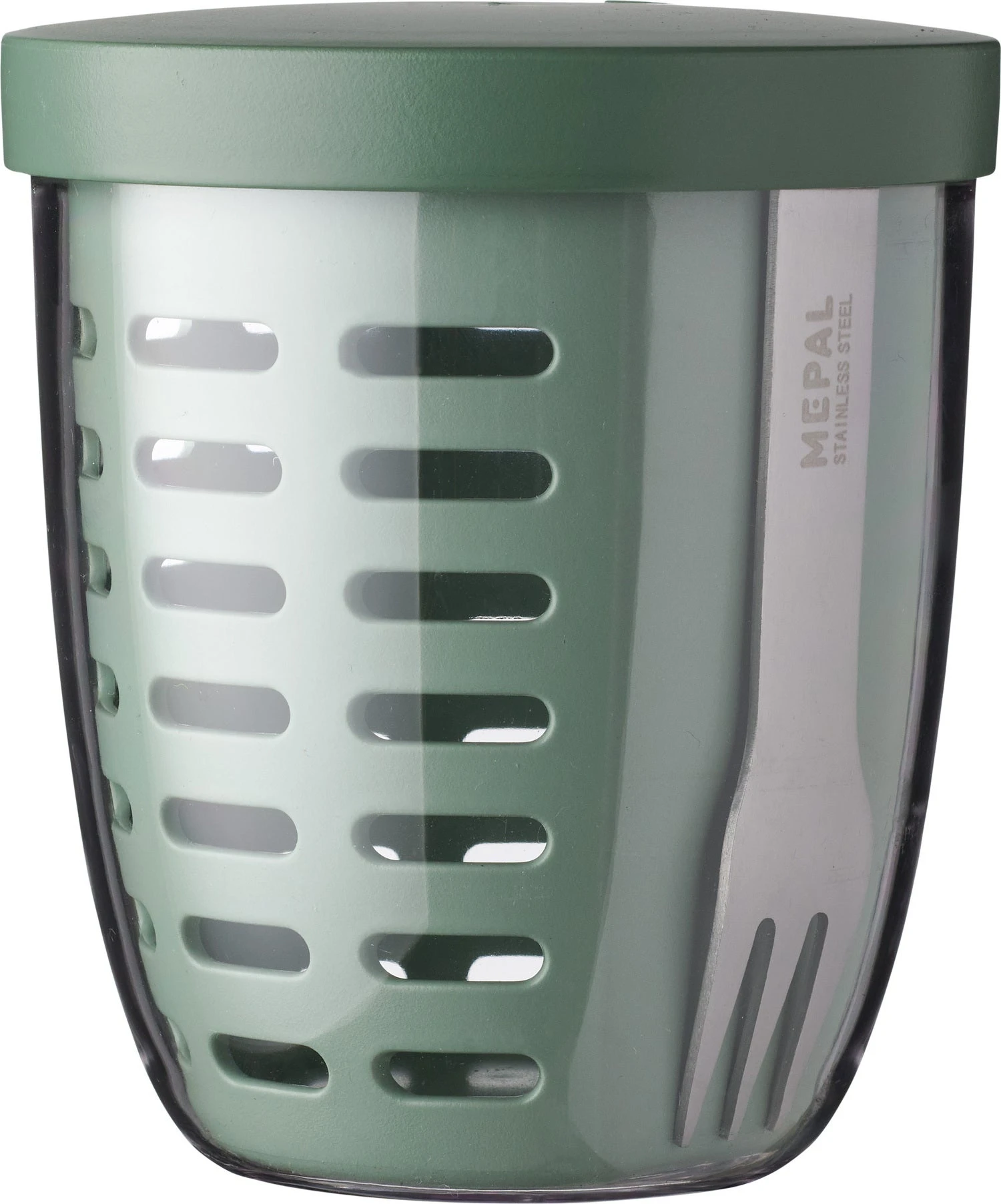 Snack gezond en neem je fruit en groente eenvoudig mee in de fruit- en veggiepot. Voorzien van slim vergietje, zodat jouw lekkers ter plekke afgespoeld kan worden. Een stijlvol RVS vorkje wordt ook meegeleverd!