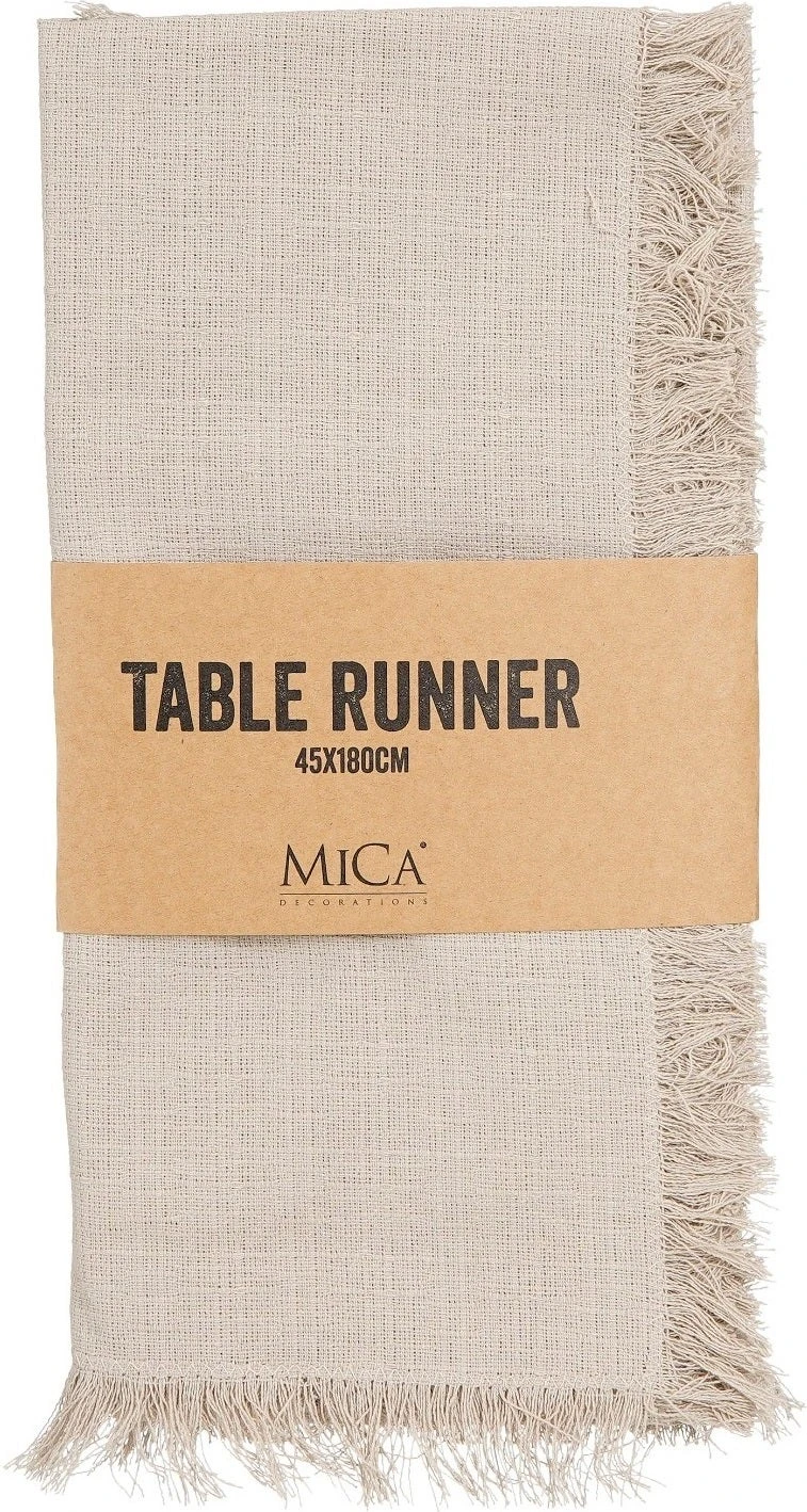 Met deze Villia tafelloper uit de collectie van Mica Decorations is je tafel extra beschermd en tegelijkertijd leuk gedecoreerd. De katoenen loper met speelse franjes langs de rand vrolijkt jouw tafel namelijk in een mum van tijd op. Zeker in combinatie met de warme, beige kleur! Niet de goede kleur? De Villia tafelloper is beschikbaar in diverse uitvoeringen. Je kunt de tafelloper wassen in de wasmachine met een fijn wasprogramma op 30 graden en een laag toerental. Leuk om te combineren met ander tafeltextiel uit de serue Villia! Tafelloper Villia is rechtoekig van vorm en heeft de afmetingen 180 x 45 cm. Aan tafel!