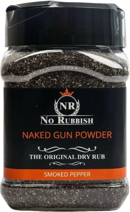 De rokerige aardse smaken van deze bijzondere rub zullen je verrassen… Denk niet wit, denk niet zwart maar in de kleur van je hart. Stoer, mannelijk en een tikkeltje vreemd maar absoluut een aanrader. De kernsmaak van deze rub zijn Smoked Pepper. Ook wanneer je niet barbecuet, zijn deze kruiden lekker om te gebruiken bij een stukje vlees uit de pan. De No Rubbish Naked Gun Powder heeft een inhoud van 200 gram.