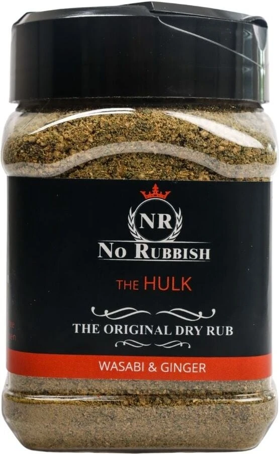 Een zeer krachtige rub geïnspireerd op de Japanse samurai Geisha’s, de dappere krijgers. Een ideale balans tussen pit en reinheid. Deze rub is bijzonder in de omgang maar pas op! Pittig.. Puur genieten! De kernsmaken van de rub zijn wasabi en gember Ook wanneer je niet barbecuet, zijn deze kruiden lekker om te gebruiken bij een stukje vlees uit de pan. De No Rubbish The Hulk rub heeft een inhoud van 200 gram.