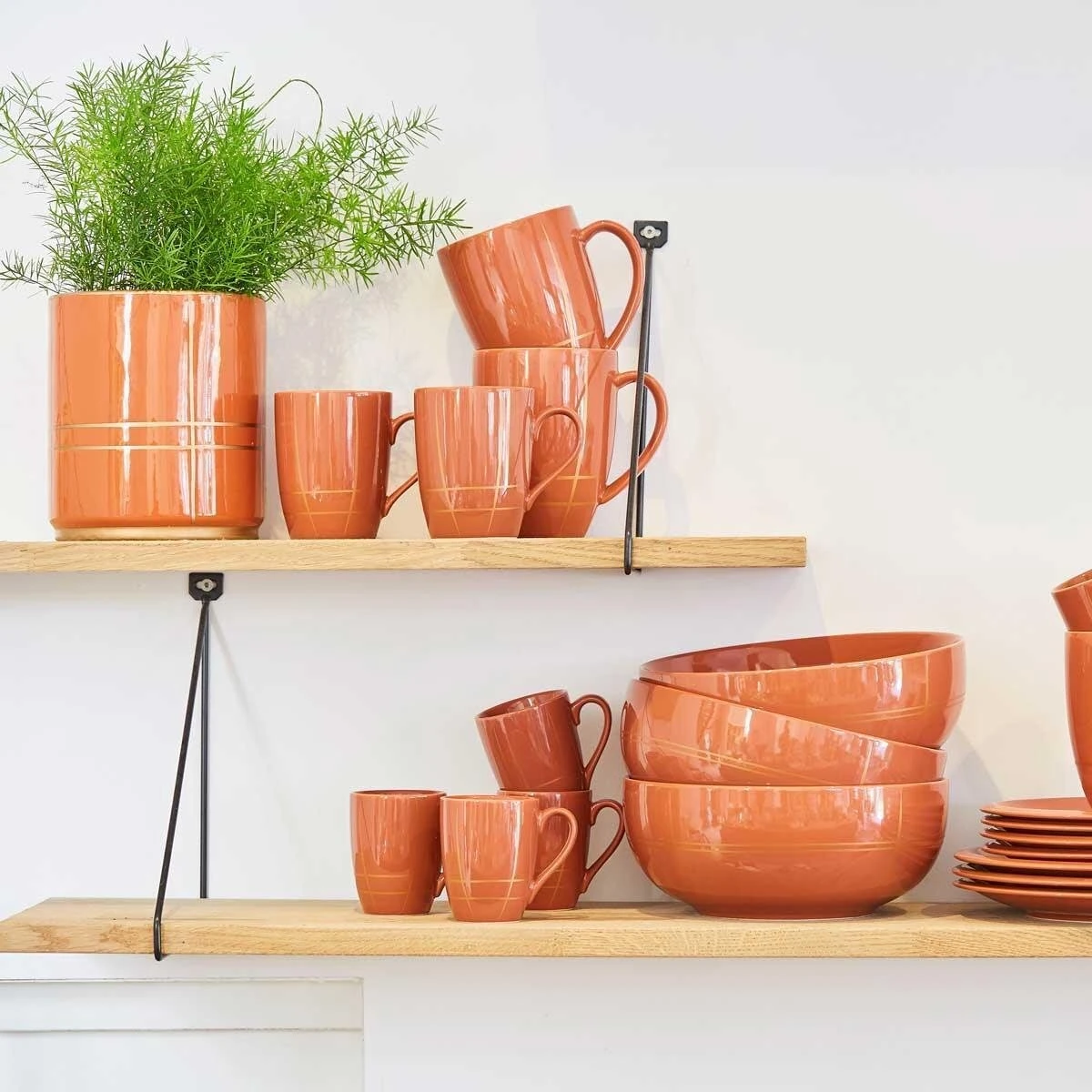 Suzie, you look so cute… Deze Suzie schaal heeft een uniek design met een typisch goudkleurig Riverdale lijnenspel. De kleur brique is een mooie warme kleur. Naast de schalen zijn er ook mokken en borden verkrijgbaar. Zo kun jij een volledig en compleet servies samenstellen. Het servies is geglazuurd en kan in de vaatwasser, de oven en de magnetron.