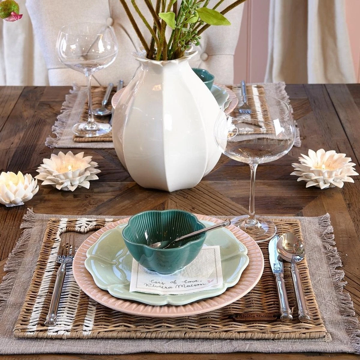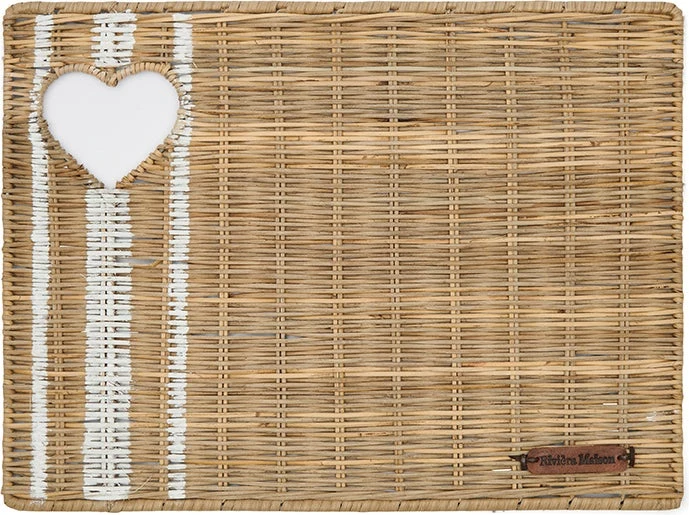 De ‘With Love’-serie ademt de vertrouwde Rivièra Maison-sfeer. Zo is dit placemat gemaakt van met de handgevlochten rattan. In het vlechtwerk is met ijzerdraad een hartje uitgespaard, als leuk detail. Hierna kreeg de onderlegger nog enkele subtiele witte details. De afmetingen zijn 40 x 30 x 1 cm.