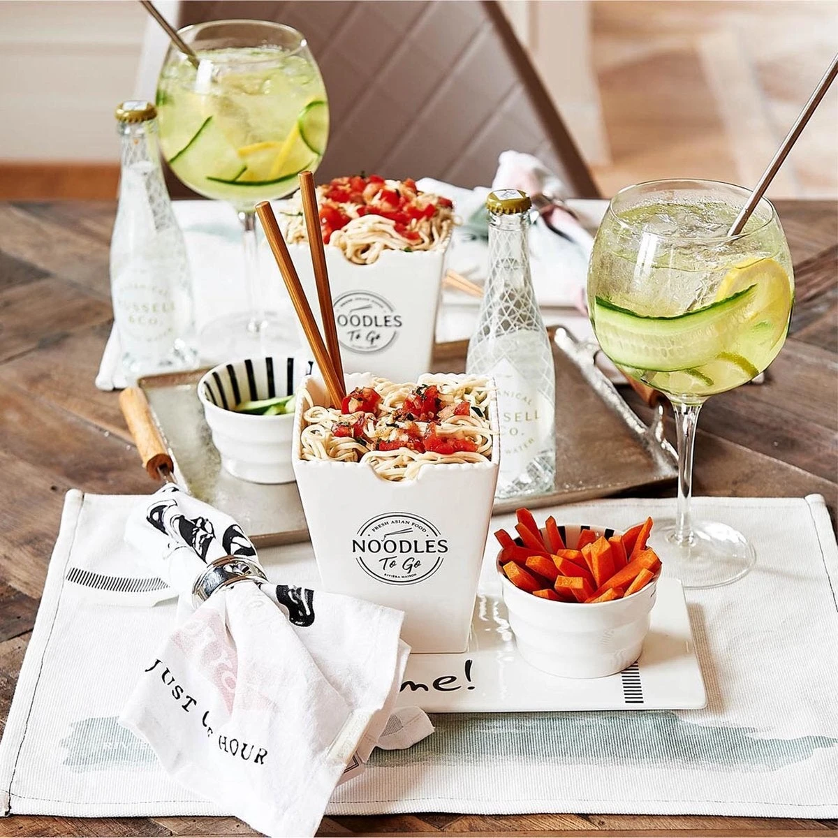 Lekker Aziatisch kokkerellen en dan de maaltijd in deze to go bekers serveren. Van mooi, wit porselein met opschrift. Of gebruik een paar van deze bekers als schalen voor de verschillende gerechten. Voor noedels bijvoorbeeld, of voor rijst of pittige groenten. Mogelijkheden te over voor wie even out of the box denkt.