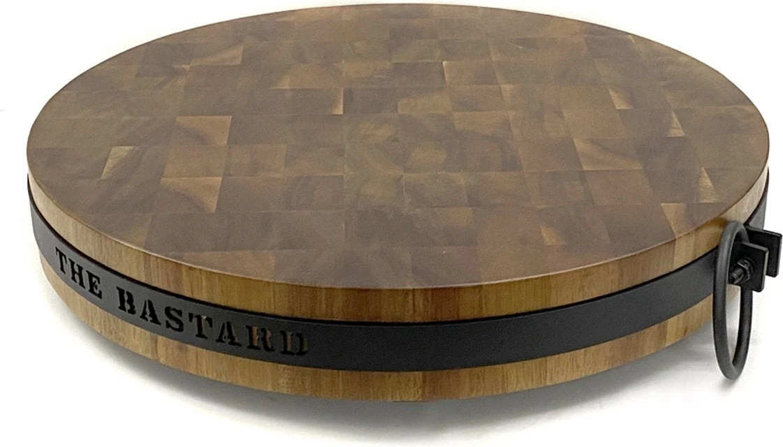 De The Bastard Butcher hakblok heeft een diameter van 40 cm en is 6 cm hoog. De dikke hakblok is gemaakt van acaciahout. Beide zijden van het hakblok zijn te gebruiken als mesvriendelijke ondergrond voor snijden en hakken.