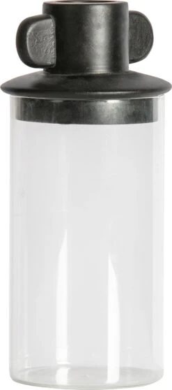 Met deze stoere Gina pot van WOOOD breng je orde en sfeer in huis. De pot is perfect om te vullen met rijst,pasta of snoepjes. De pot is gemaakt van transparant glas en heeft een zwart cementen deksel wat zorgt voor industriële uitstraling. Gina is verkrijgbaar in twee formaten die leuk met elkaar te combineren zijn.